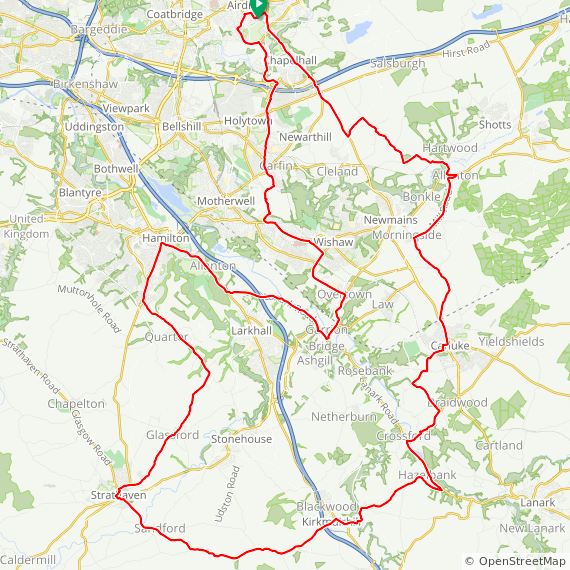 Level 3 assist got me up the climb with ease where I passed through the main road in Carluke and immediately turned off back to the quiet back roads through Morningside and Allanton with almost 50 miles covered!