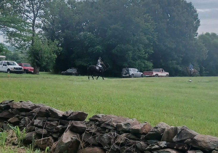I paused in my ride to check out the herd of horse trailers to see if I spotted the one belonging to another neighbor of mine just two farms down the road. He's an avid polo player, and just a delightful person who is always happy to stop what he's doing to shoot the breeze with me. I didn't see his trailer, so called out to an official looking person standing at the edge of the playing field, intently scrutinizing his phone, asking who was playing and when the game was supposed to start. (You can just make him out in the picture above - he looks a bit like a post on the left) He looked up at me and called back that it was just local players, just as a polo player trotted past him onto the field. "It's starting now", he said, then added cheerfully, "You're welcome to stay and watch!" I smiled at the invitation and very seriously considered it for a few minutes. I love the game, and the spectators are always very social and engaging. But....I lacked the proper dress to spectate, and would have had to sit on the grass in lieu of not having packed a lawn chair with me on my bike, as well as any yummy tailgate, although I'm sure the other spectators would have been happy to allow me to take part in their delicious tables.