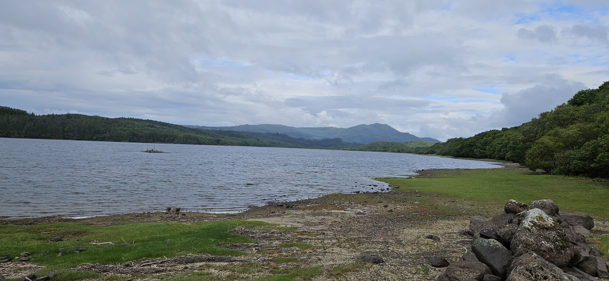 The road actually follows the loch and it was starting to spit with rain again but nothing too bad, this is looking east!