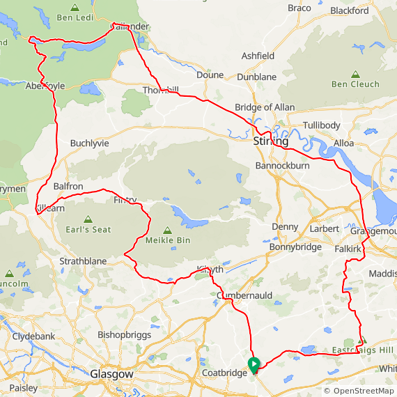 Another Thursday, yet another big ride! After last weeks epic ride I was hoping to get out for a shorter recovery ride during the week but the weather hasn't been playing ball so with a decent forecast today I decided to do another long one! I set off at 5am to avoid the morning traffic, the roads were nice and quiet so I was in my happy place! Thankfully our temps are back to normal, a lovely 18C today which was very refreshing and a light westerly wind which was due to strengthen as the day progressed! So I headed NW with the turning point set for the Dukes Pass in the beautiful Trossachs area of Scotland, it was a little chilly when I set off so I decided to head over the Campsie Hills to warm me up! It worked a treat and I then had the lovely descent to look forward to, I was sufficiently warm as I started the descent and I was now heading for Killearn!