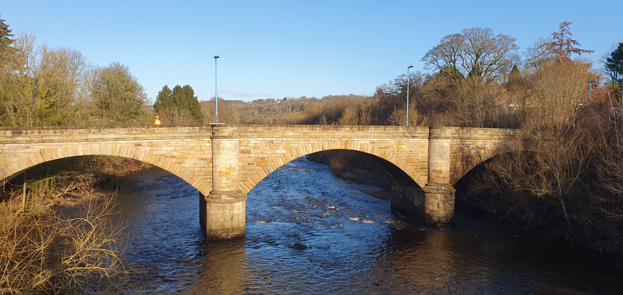 My legs had recovered sufficiently from Thursdays epic ride so I set out in the morning sun on another local ride, it was a little windy but not too bad! The wind was straight from the west today and around 20-25mph so I picked Kirkmuirhill as my turning point, I started off heading south towards the Clyde Valley and as I descended into the valley at Garrion Bridge I came across a big line of cars which were stopped because of work on the bridge! No problem on the bike of course and I continued on and grabbed a couple of photos crossing the bridge!