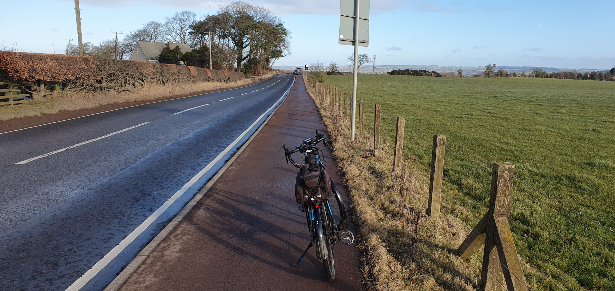 Level 3 assist got me up the climb with ease where I passed through the main road in Carluke and immediately turned off back to the quiet back roads through Morningside and Allanton with almost 50 miles covered!