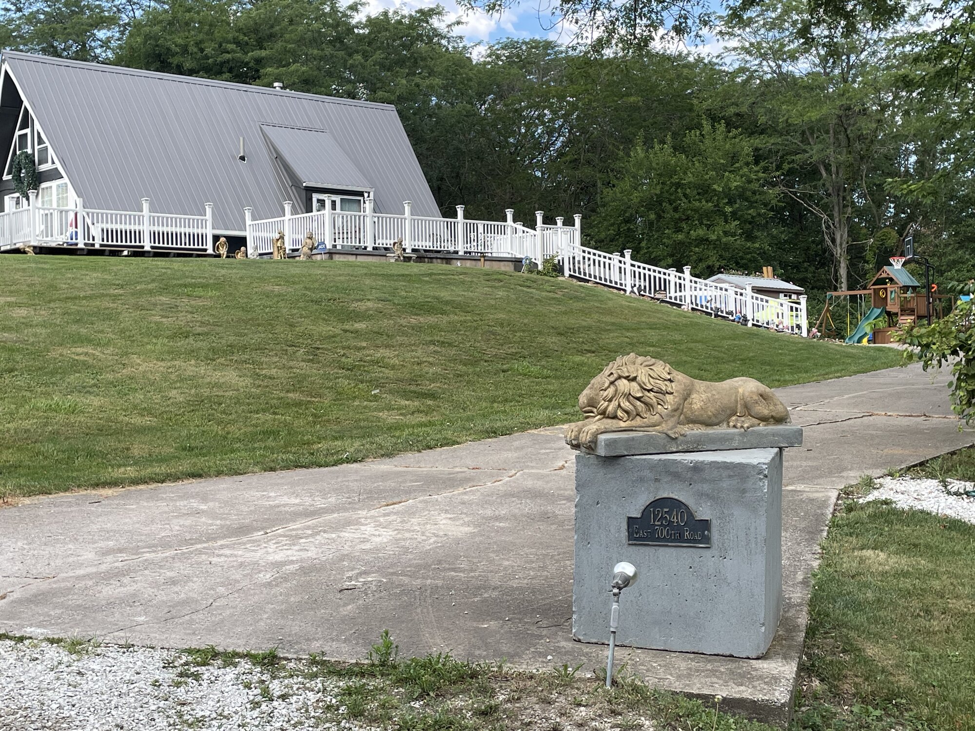 I did 21 miles today, humid but not hot with light winds. Lions on a pillar, a little strange on a rural house, a barn which I suspect I may have photographed already, and the new performing arts center they are working on at the local college, a multimillion dollar project.