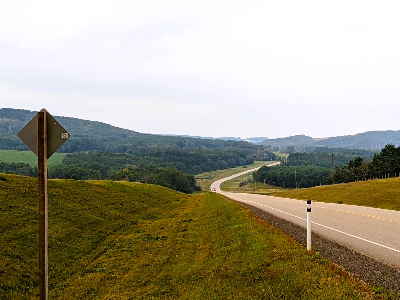 Looking east towards where the road gradually bends north indicating our turnaround point at Hwy 20.