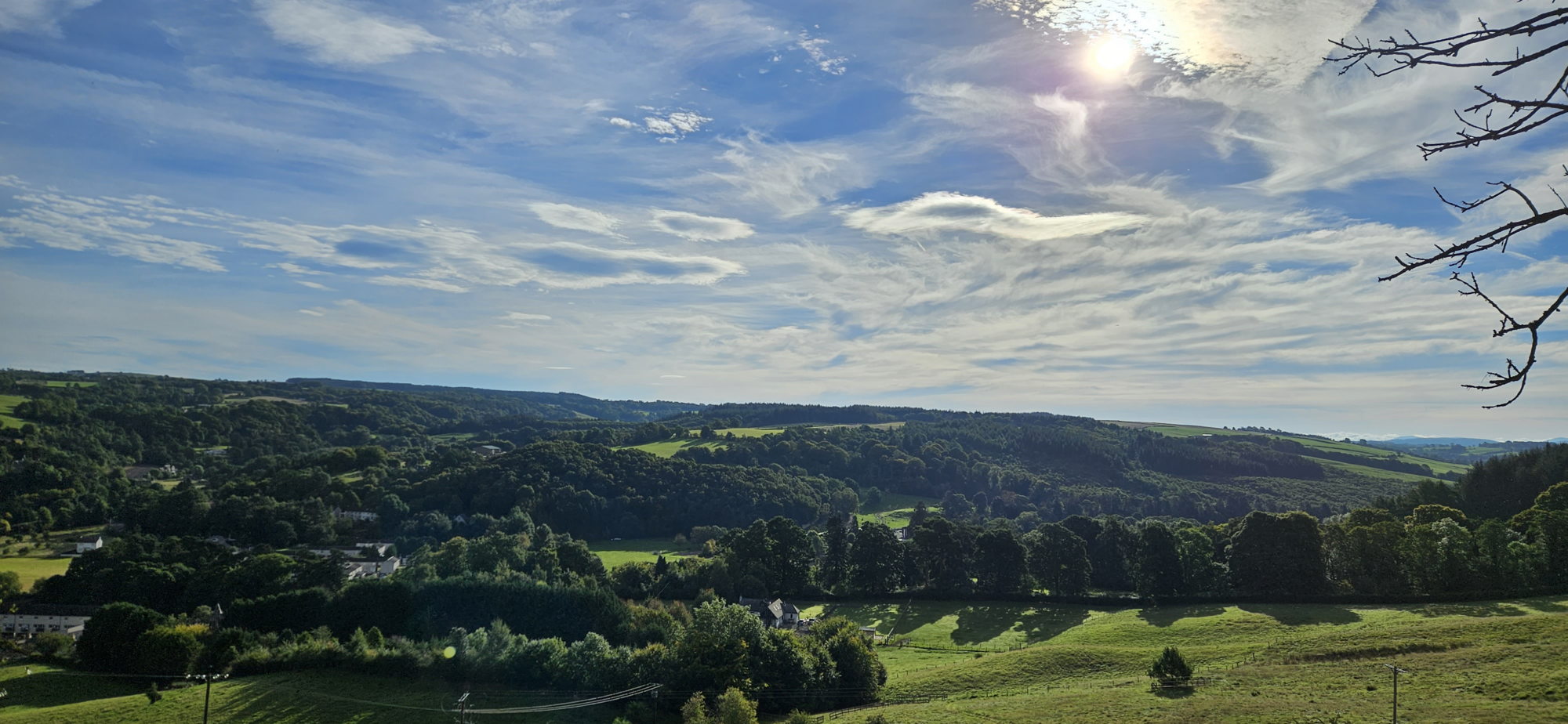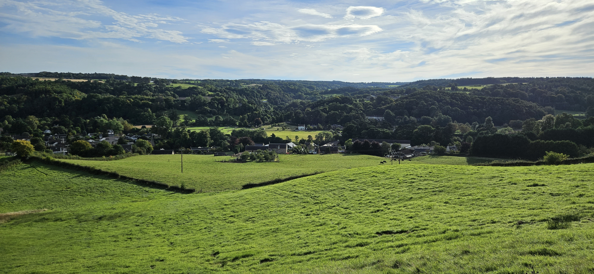 It was now time to start climbing and I was sure glad the sun was hiding now, the first climb is a real beast and its very narrow also and of course just as I turned on to the steepest part a car appeared but luckily the driver had the sense to stop and leave me enough room to pass without stopping, a thank you was forthcoming and I got a nod back!👍Yet more climbing was on the cards and as I was nearing Slamannan I could actually see some blue sky appearing and as I started the climb up through the village the sun broke through and the difference in temperature was immediate!