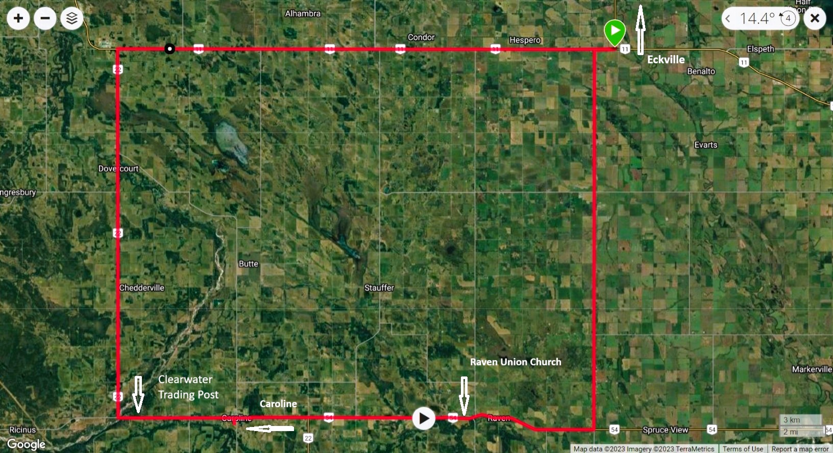 After several days of skies being blanketed by wildfire smoke, we finally received the much-needed break that we were waiting for so we headed out on a ride out in the country to make up for lost time. With clear skies forecasted, today’s ride would take us on a counterclockwise loop starting on the outskirts of the Town of Eckville west along Hwy 11 otherwise known as the David Thompson Highway.
