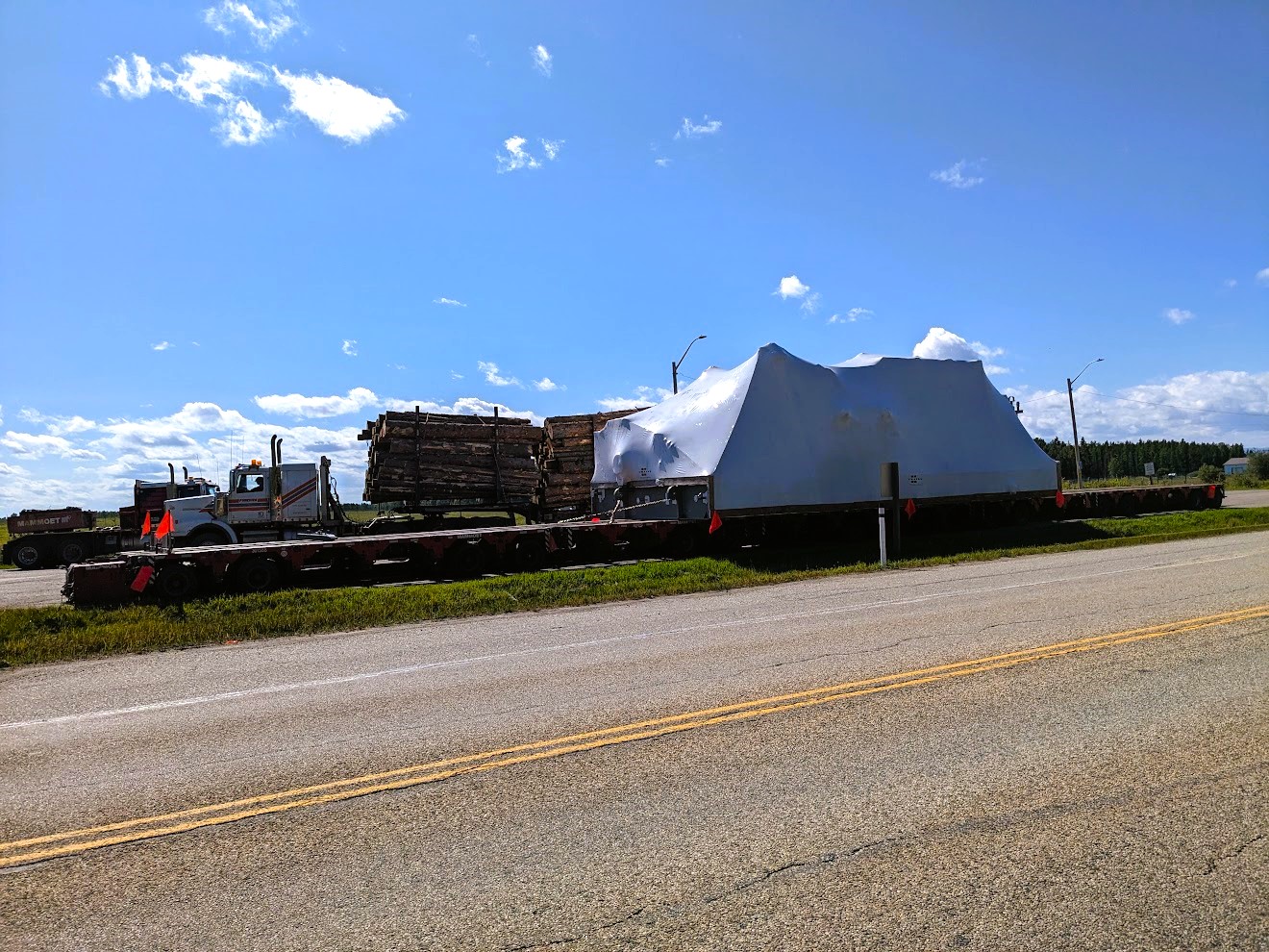 Traffic along #11 which is considered to be a major corridor for the trucking industry was horrendous with drivers having little regard for cyclists flashing lights or not. I have no idea what was under cover along this rest stop but it was huge. Just typical of the loads one can expect truckers to be hauling.