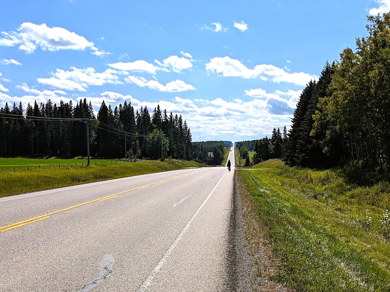 The 33 km stretch to the turnoff south onto Hwy #22 (aka The Cowboy Trail) couldn’t have come sooner and we felt relieved after having made a hasty exit off of #11. Unfortunately, it was short lived as we lost count of the number of logging trucks that screamed by us on this 25km leg towards the Town of Caroline.