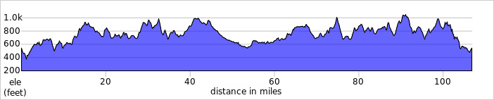 When I was climbing the last hill my elevation gain was showing just over 8000ft on my gps but Ridewithgps is only showing 6934ft of elevation gain, I'm almost certain that was over 8000ft and my legs agree!