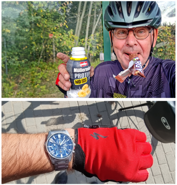 Sunshine appeared at 1 p.m. I could finally remove my sleeves! See the Mullermilch protein drink: the commercial is the cow MOOOO!