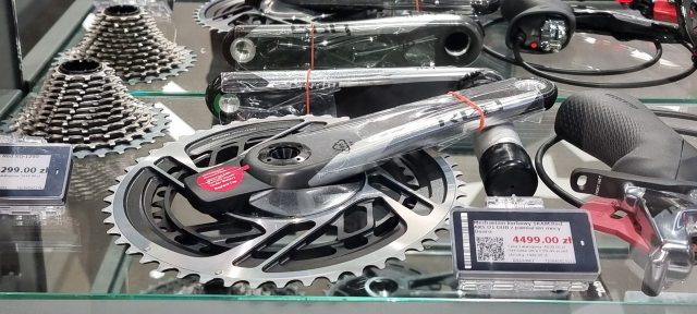 A US$1,000+ SRAM XX1 crank with a chainring and a power meter.