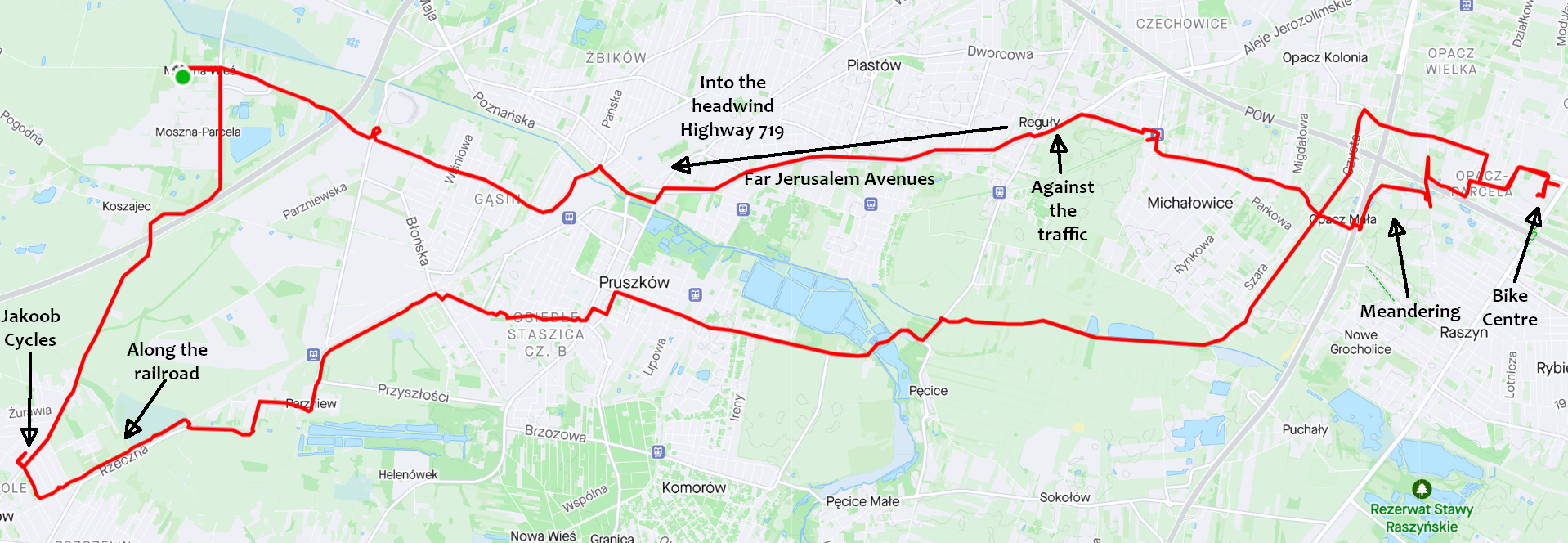 Complicated Warsaw suburbs, Bike Centre, and headwind!