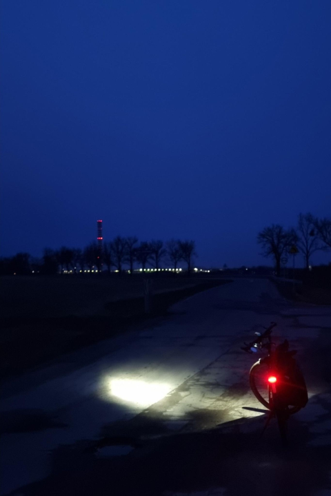 There is a long sequence of bike paths in Wola. The stretches of these bike paths are occasionally broken by junctions with traffic lights. I stopped just behind a gravel cyclist on one of such junctions. When the lights changed to green, the man started riding at high speed! Interesting... I increased the assistance of my Vado. However, I had intentionally limited the max assistance to just 50% (for more workout and longer battery range). As I was riding at 36 km/h, he ride faster (I later determined his max speed to be over 41 km/h!) However, he was stopped by the red light often, so I could catch up with him several times. Then... There was an overpass with a steep climb. The guy was as strong he started disappearing at distance! :)
