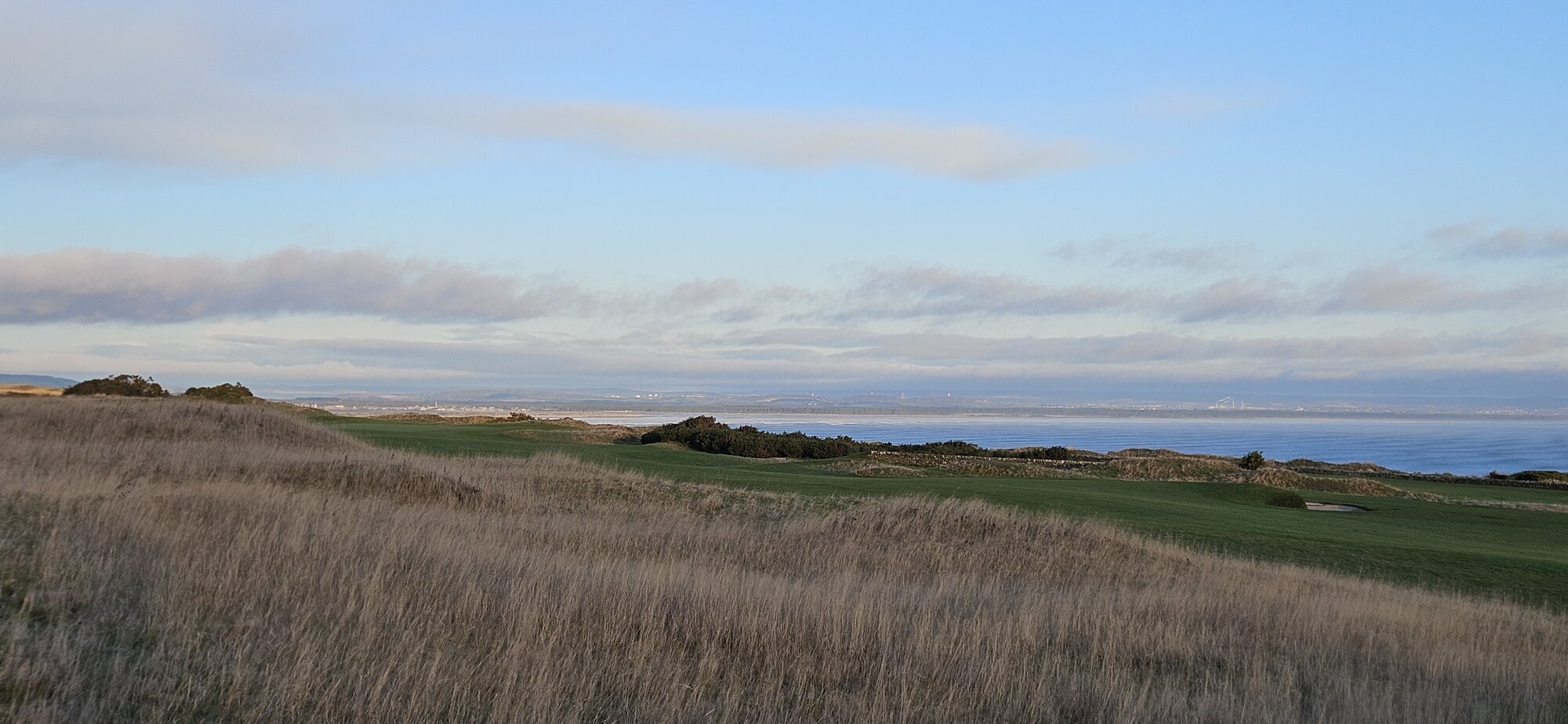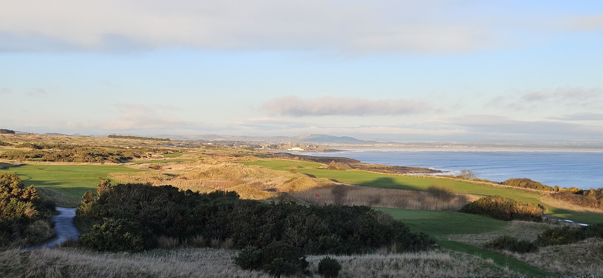 A couple of miles up the coast I turned into the grounds of the Fairmont Hotel to grab more photos, this is looking across the local golf course with St Andrews in the distance now.