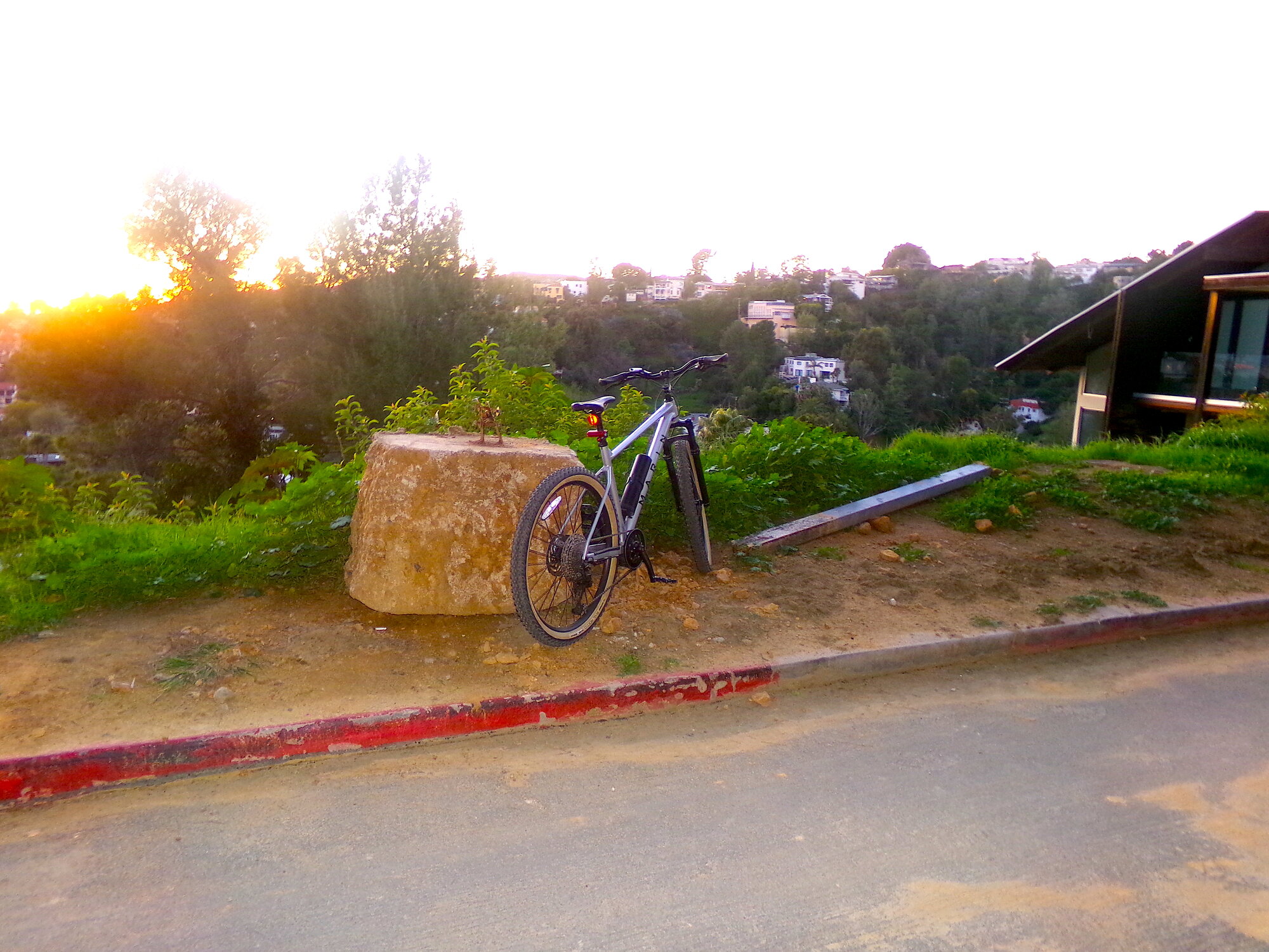 Here's a nice spot on a mixed-use trail near the reservoir. This one trail is fairly well known, though not a lot of bikes. I fully expect it to be closed today due to erosion and landslides, but we'll see-- if I can get up there before lunch! The Marin is pretty stealth, as you can see, looks pretty acoustic.