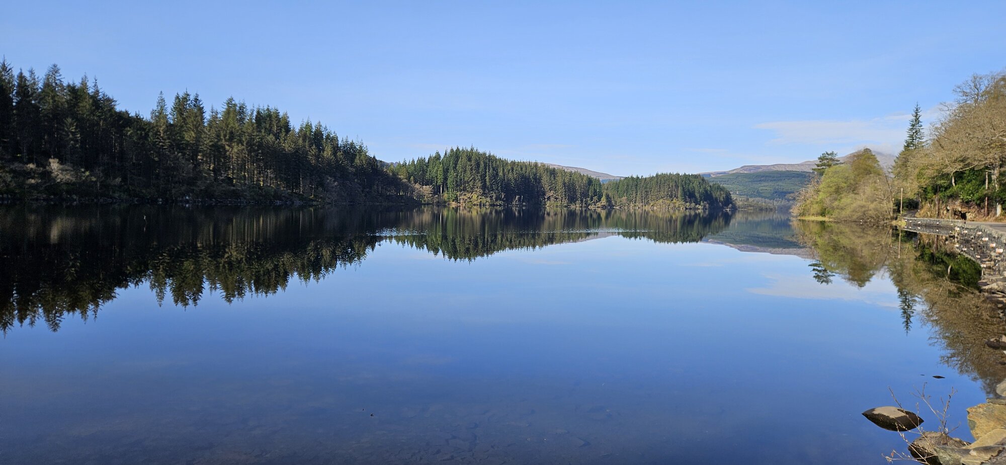 From there I headed out to Strathblane where I joined the main A81 all the way to Aberfoyle, then I took the back road to Stronachlachar! Its such an amazing twisty road with lots of ups and downs all the way, passing a few lochs with the first one being loch Ard! This part is separated from the main loch and it was looking fabulous with the mirror image!