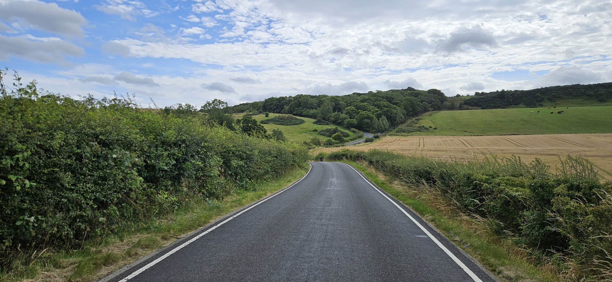 Thankfully the clearing I saw came to fruition and after 30 minutes or so I reached dry roads and I decided I would head for the Clyde Valley! As I got closer the dark clouds moved in and I had to change my plans as I could see a big squall down the valley, so I turned NE towards Braidwood and then over to Carluke and up the climb to Yieldshields where I took the back road to Morningside!