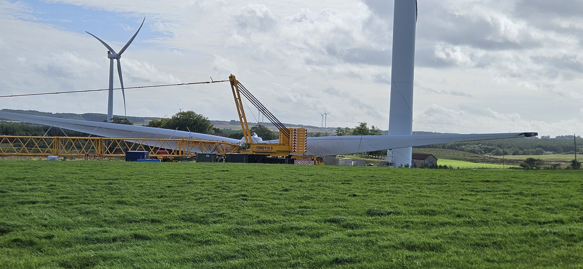 I stuck to the cycle paths all the way to Whitburn and then up the climb to Armadale and took the back road to Blackridge! In the distance I could see one of the massive wind turbines with no blades, I eventually reached it to see this sight! The crane was just massive, I couldn't get it all in the picture!