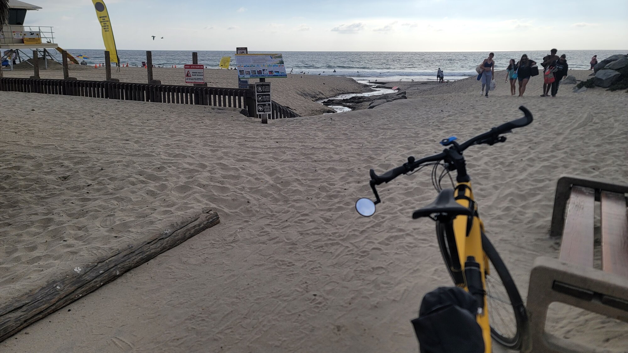Moonlight Beach at the mouth of Cottonwood Creek. Except for a quarter mile of TURBO to outrun some traffic, rode the rolling 5 miles home with the motor OFF.