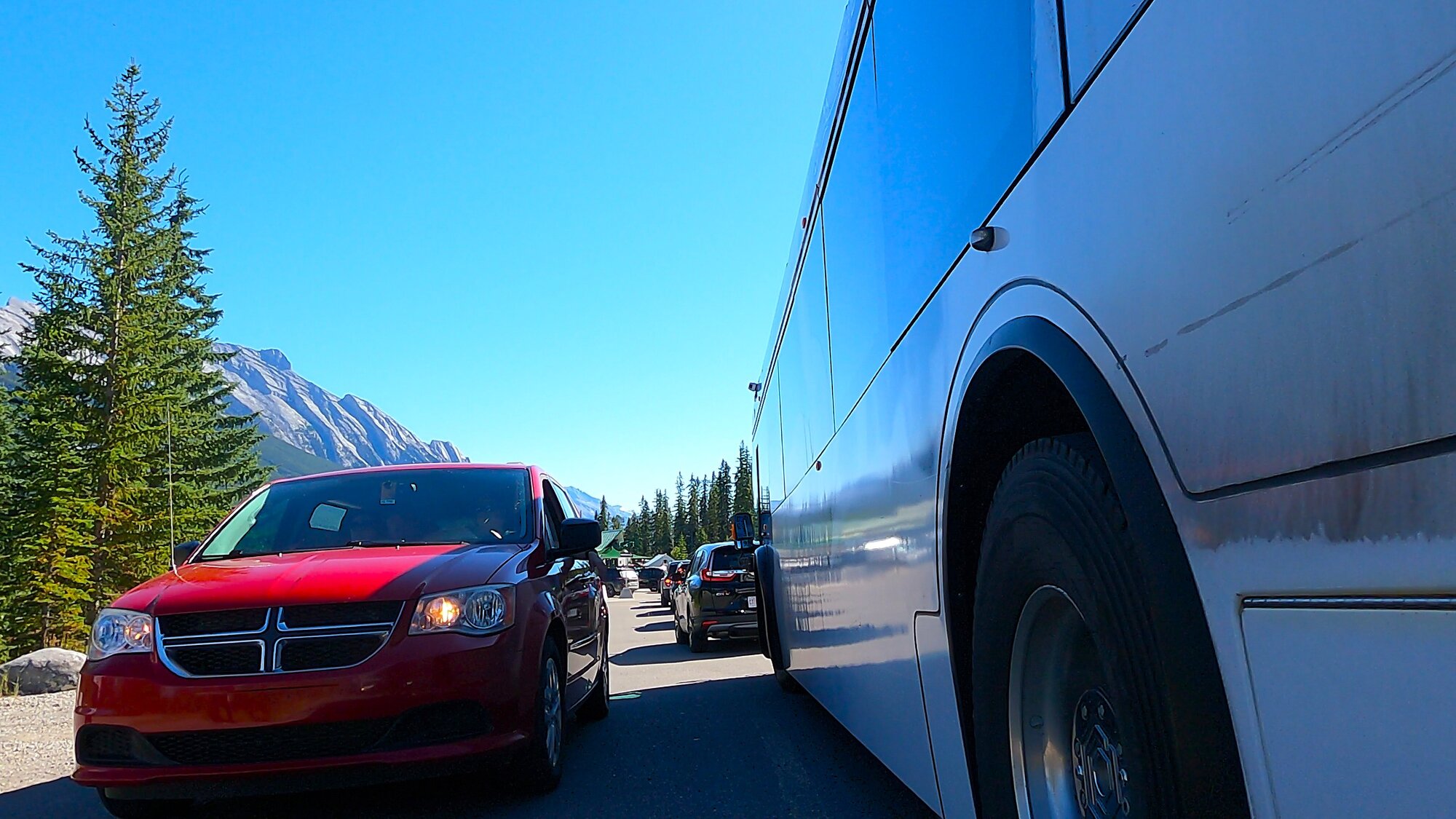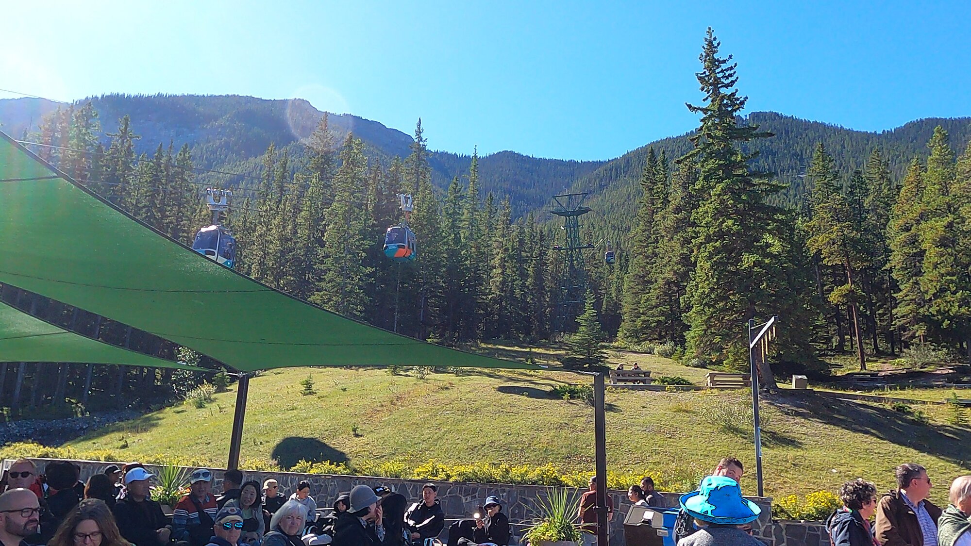 Up at the top, it became even more interesting as traffic slowed to a crawl with tour buses and other vehicles jockeying for parking. We weaved our way among the dozens of cars until we reached the safe confines of the gondola center where people were waiting for shuttles to take them back down to the townsite.