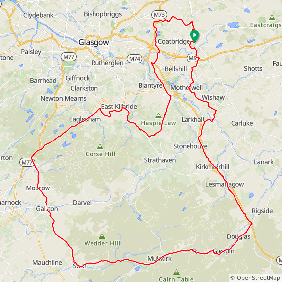 We finally have a week of decent weather so I made the most of it today, light winds but a little chilly at first when I set off at 7am! I had a ride planned in my head which involved a trip down to Ayrshire as I haven't been down that way for quite a while! I headed out to the Clyde Valley but discovered the road I wanted to take was closed so my plans were scuppered in the first hour, so I had a rethink and decided to do the route I wanted to do but in the opposite direction! That way I could get on to quieter roads, in my head I was thinking this way was going to be tougher but it turned out to be 500ft less climbing which surprised me...