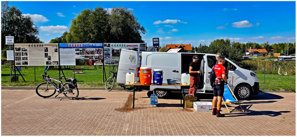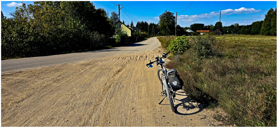 35 km into the race. Because of drought this year, even good gravel roads became sandy! (In the last part of the race, we had to negotiate deep sand for even 2 kilometres!) Here, I shortly stopped to discover I lost my tail-light (because of the road vibration). The light was later found by the organiser crew and I could collect it in Warsaw on Monday!