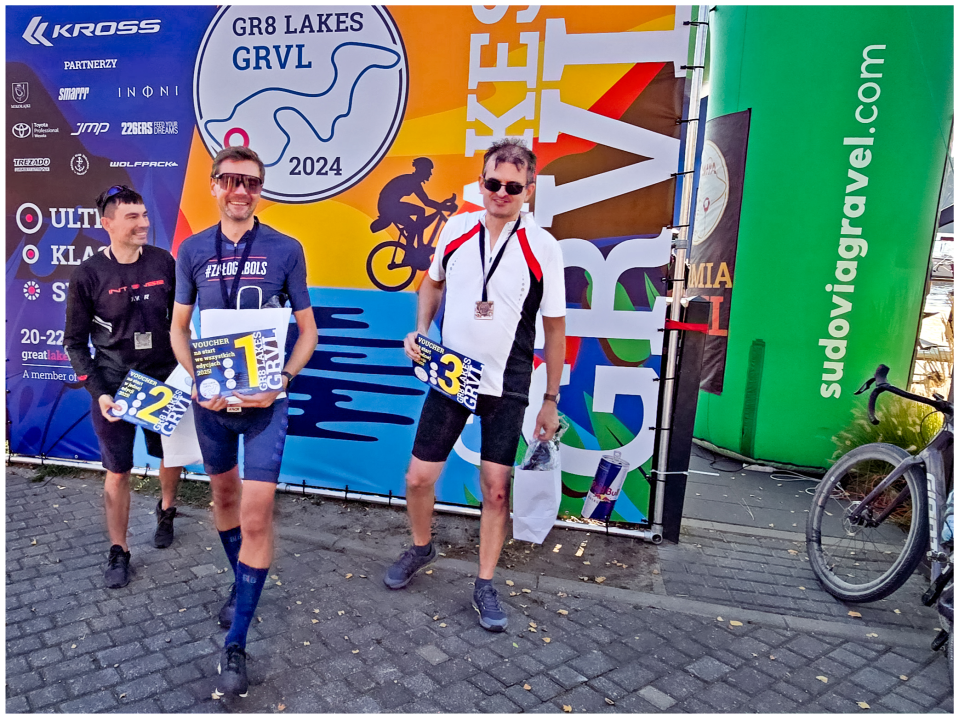 The E-Sprint Men podium: Wojtek (1st), Sebastian (2nd), Darek (3rd). Wojtek told me he had a chance to win E-Sprint but he made a stop on the ride...