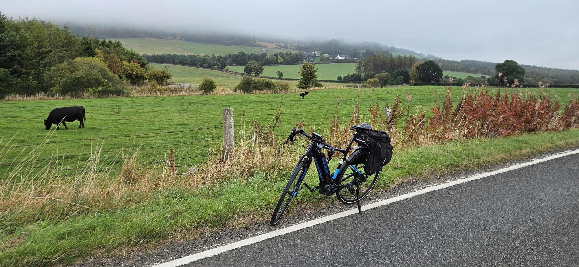 I had a route planned for yesterday that would have been close to 125 miles, my plan was to drive to Kincardine and cycle inland to St Andrews and then head down the east coast back to Kincardine! Unfortunately the weather had other ideas with mist and fog pretty much all the way to Kincardine, it was really thick patchy fog around the Forth estuary! So I decided to keep driving in the hope things would clear up and thankfully near Kinross things were looking much more promising so I parked the car in a safe layby and had a think about a new route!