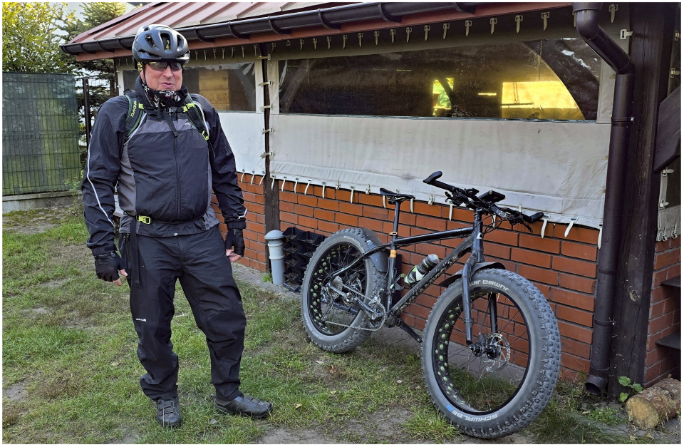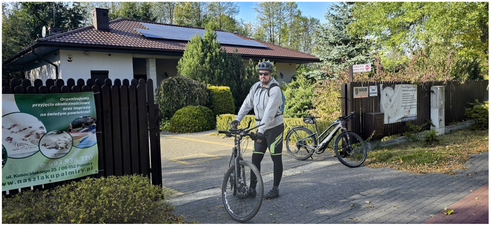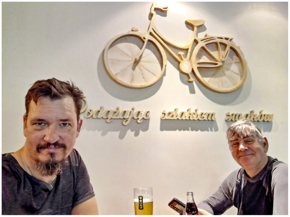 I should have worn merino long johns for the ride; it was a cold and windy day! I started my ride to Jacek at 9:02 and arrived there at 10:36. My brother first took a great care to vulcanise a patch inside my punctured Rhombus Pro tyre, and he also used a filler for the hole itself. Eventually, he discovered my Vado rear brake was installed wrongly (a mystery how that could have happened!) and fixed that, too. Meanwhile, Tommy joined us, riding fast from South Warsaw (I was impressed with his performance!)