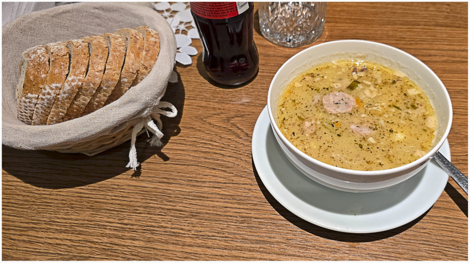 Zhur, nourishing soup full of white sausage and hard boiled egg.
