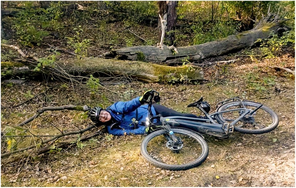You wouldn't believe it! I tripped my own legs while walking my e-bike!We could not stop laughing!