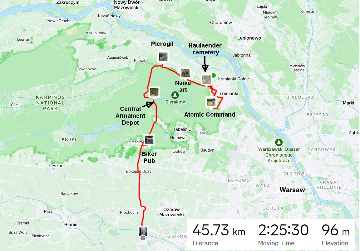 To avoid riding unpleasant cobblestone, I made a detour by the remnants of the pre-WW2 Central Armament Depot. Unfortunately, we had to ride in deep sand, where my friend crashed once.