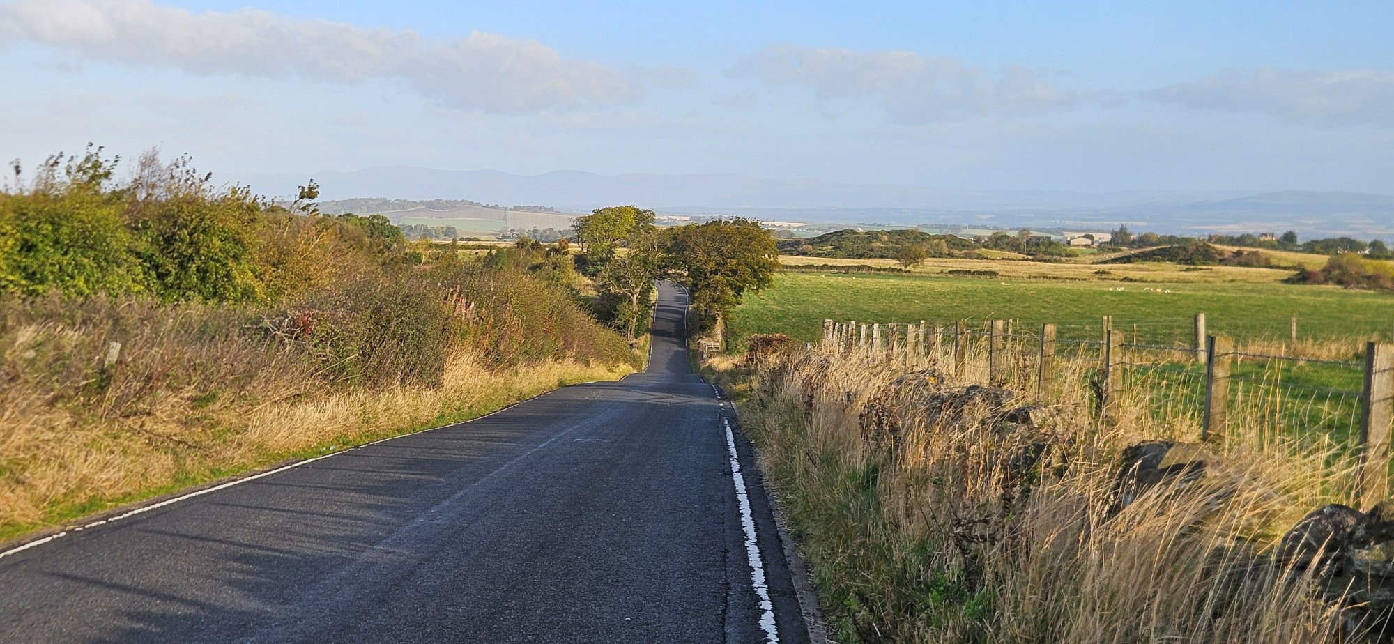 I then took the back road to Avonbridge, passing through Standburn and enjoying the awesome rollercaster road all the way to Avonbridge! The final part is a big descent where I would normally be doing well over 35mph but struggled to hit 25mph today! From Avonbridge I continued west towards Limerigg, another well protected road thankfully! I stopped for a snack and a break and grabbed a few photos looking north!
