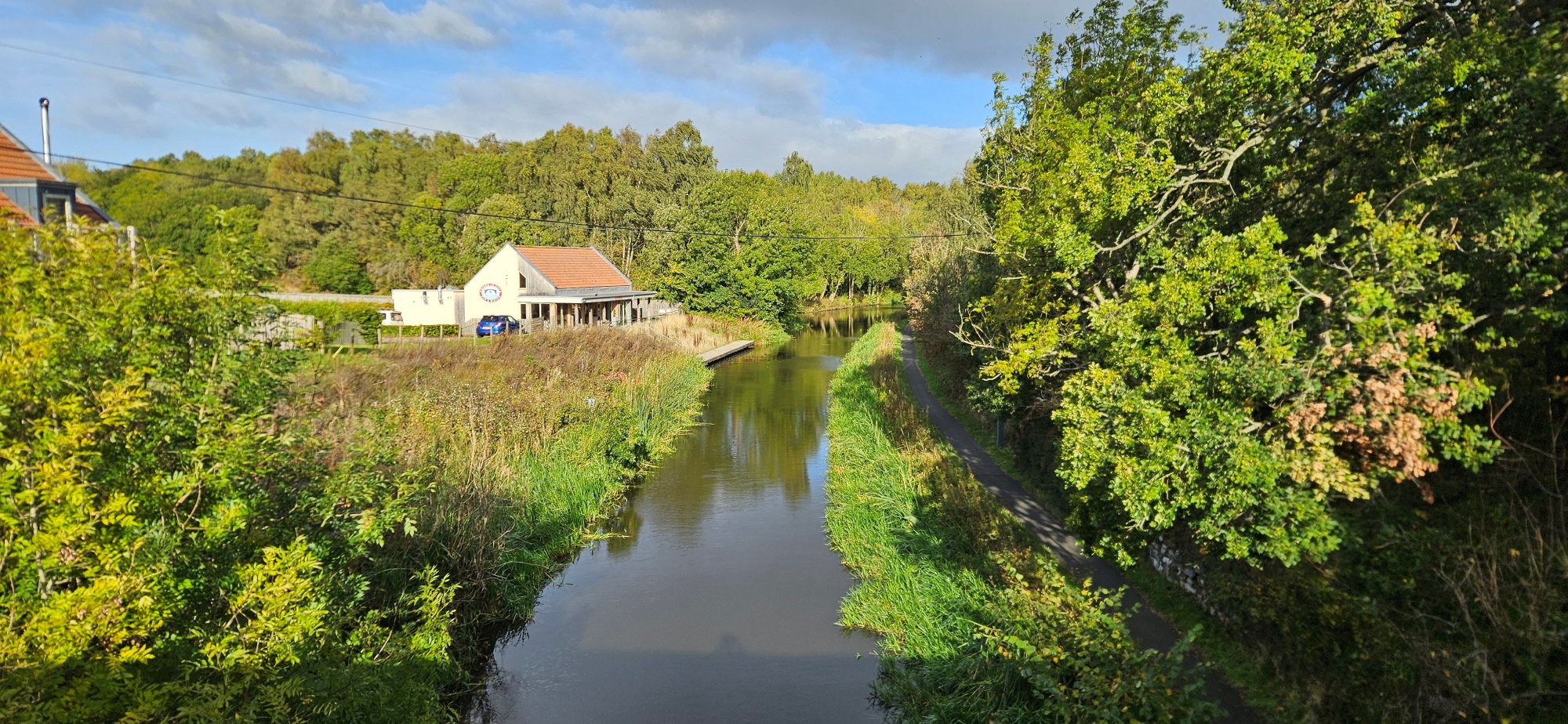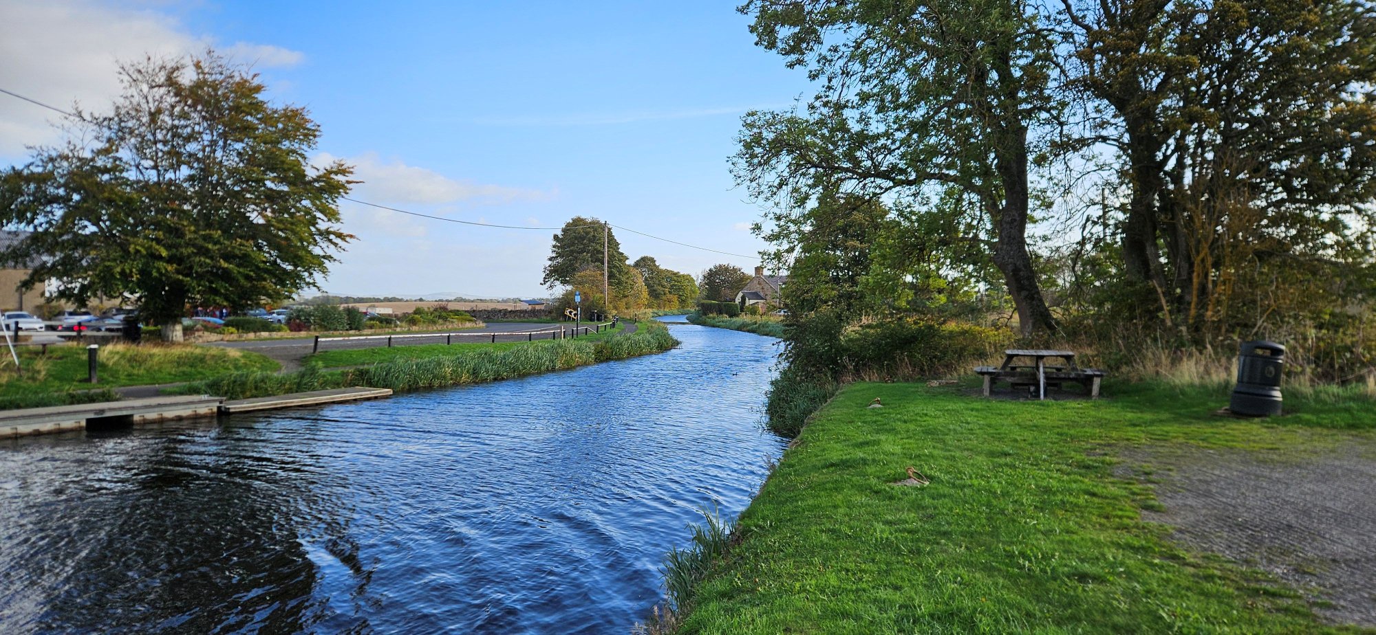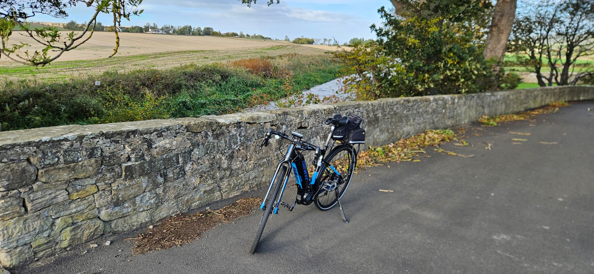 At the end of the road I turned north for Threemiletown, its a big descent to start with and I had a very strong crosswind from the left and it was way more than 35mph! At Threemiletown it was time to turn west directly into the wind and I had to up my assist level to 2 instantly! Even on level 2 it was hard going but manageable, after a couple of miles I turned off the main road to get some photos of the Union Canal!