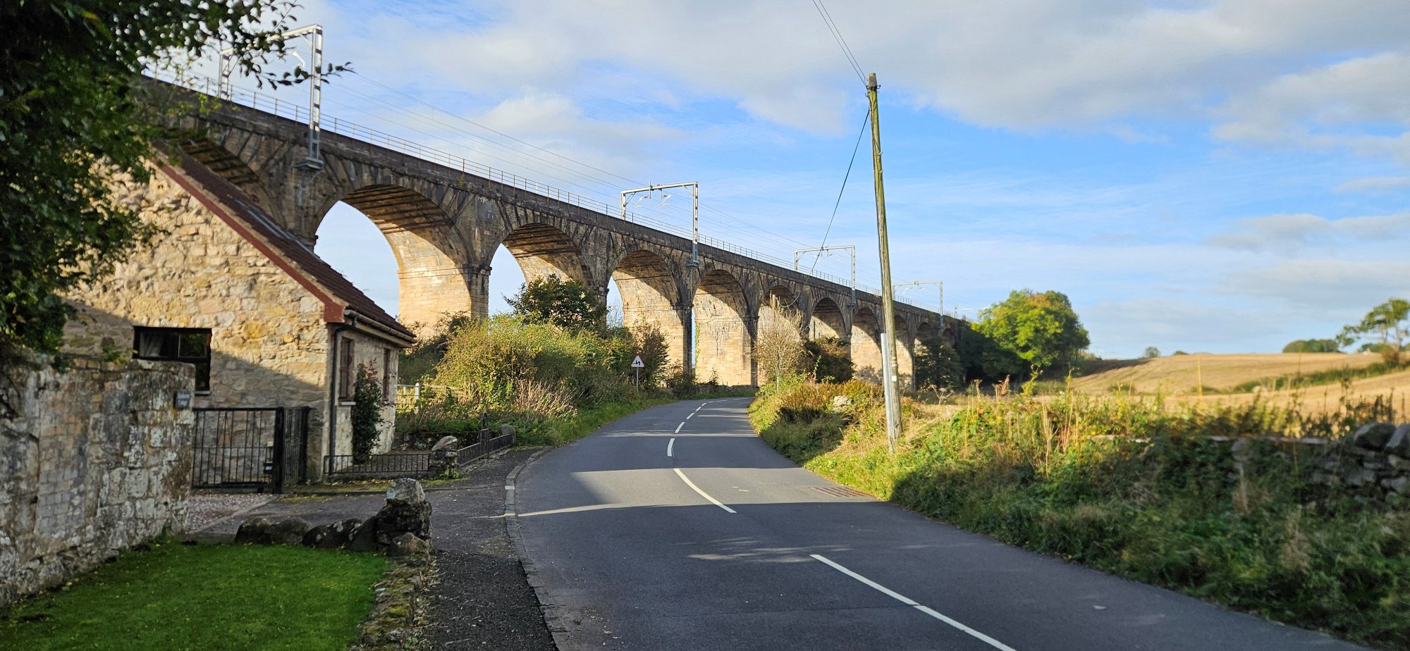 I made my way back to the main road again and battled the wind into Linlithgow, I'm sure it was close to 50mph at times! The town was quiet for a Sunday much to my delight, I think the wind was keeping people indoors! At the far side of town I took the back road under the Linlithgow Viaduct!