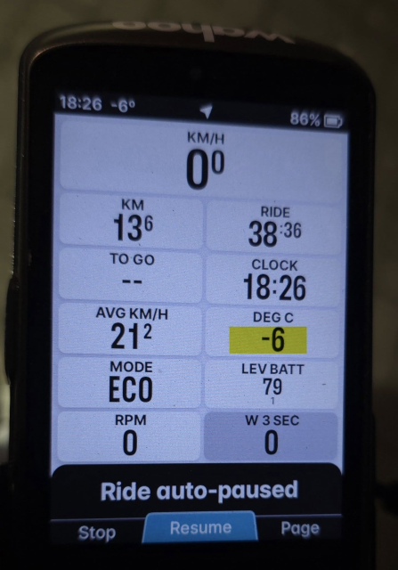 The Wahoo temperature readout is still -3 C off in the low temperature region. The actual temp was -3 C.