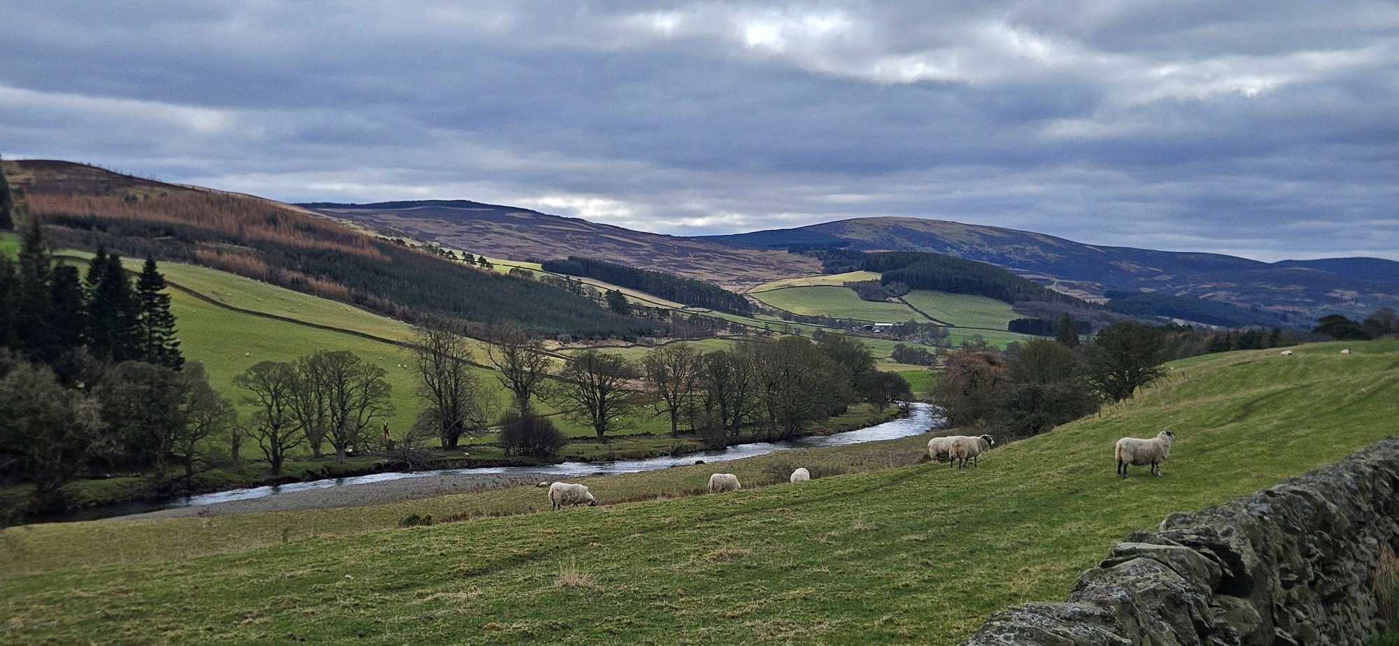 I then turned SW and took the back road to Stobo and stopped for a photo of the Tweedsmuir hills and the River Tweed!