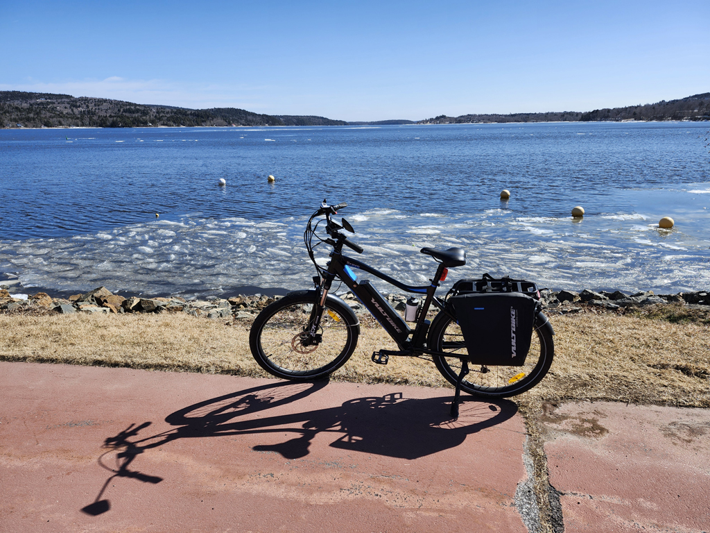 Again, riding my Vado SL but with no equipment, as everything I needed was a small backpack. There is always an issue what to wear during early Spring when there is between 10 and 5 C, cold wind is blowing but the day is beautifully sunny. I wear a mixed bag of winter and spring clothes, in which my Helly Hansen sailing jacket plays the major role: it is perfect zipped or unzipped, depending on the weather condition! (I think it was my best buy of 2022!)
