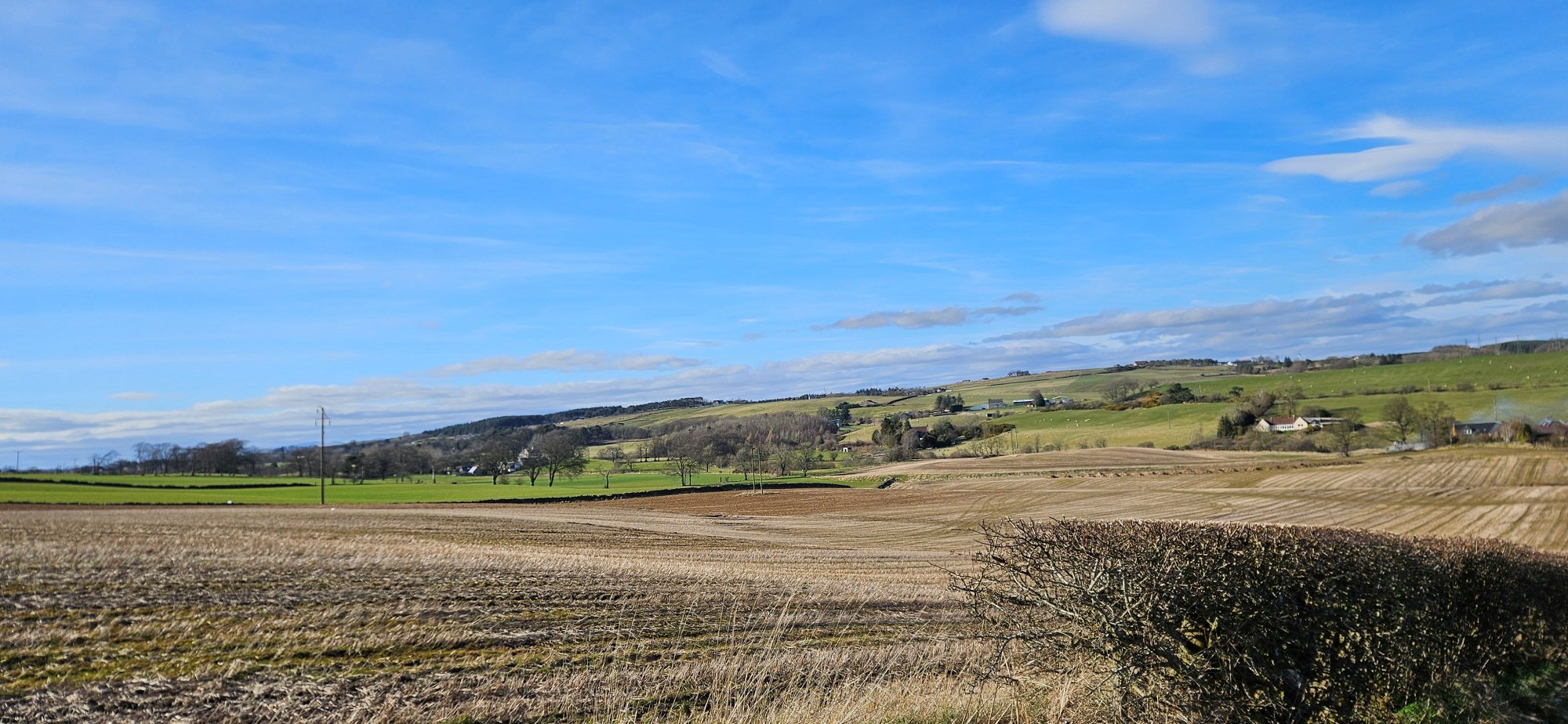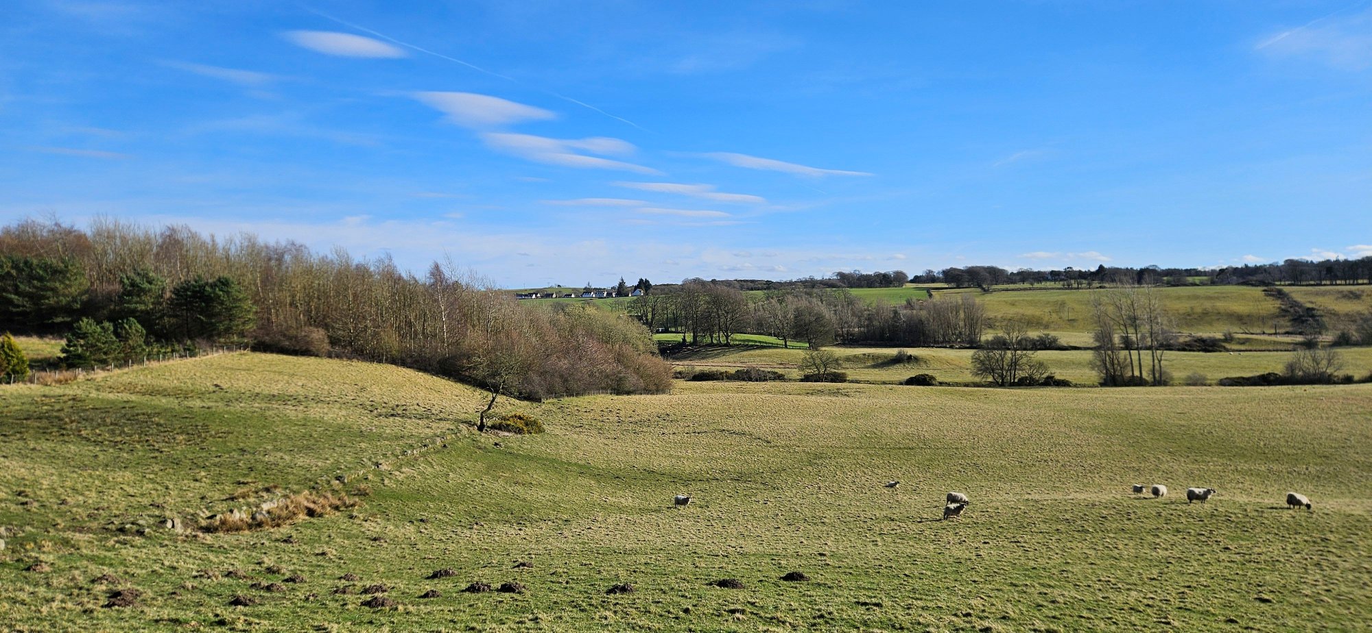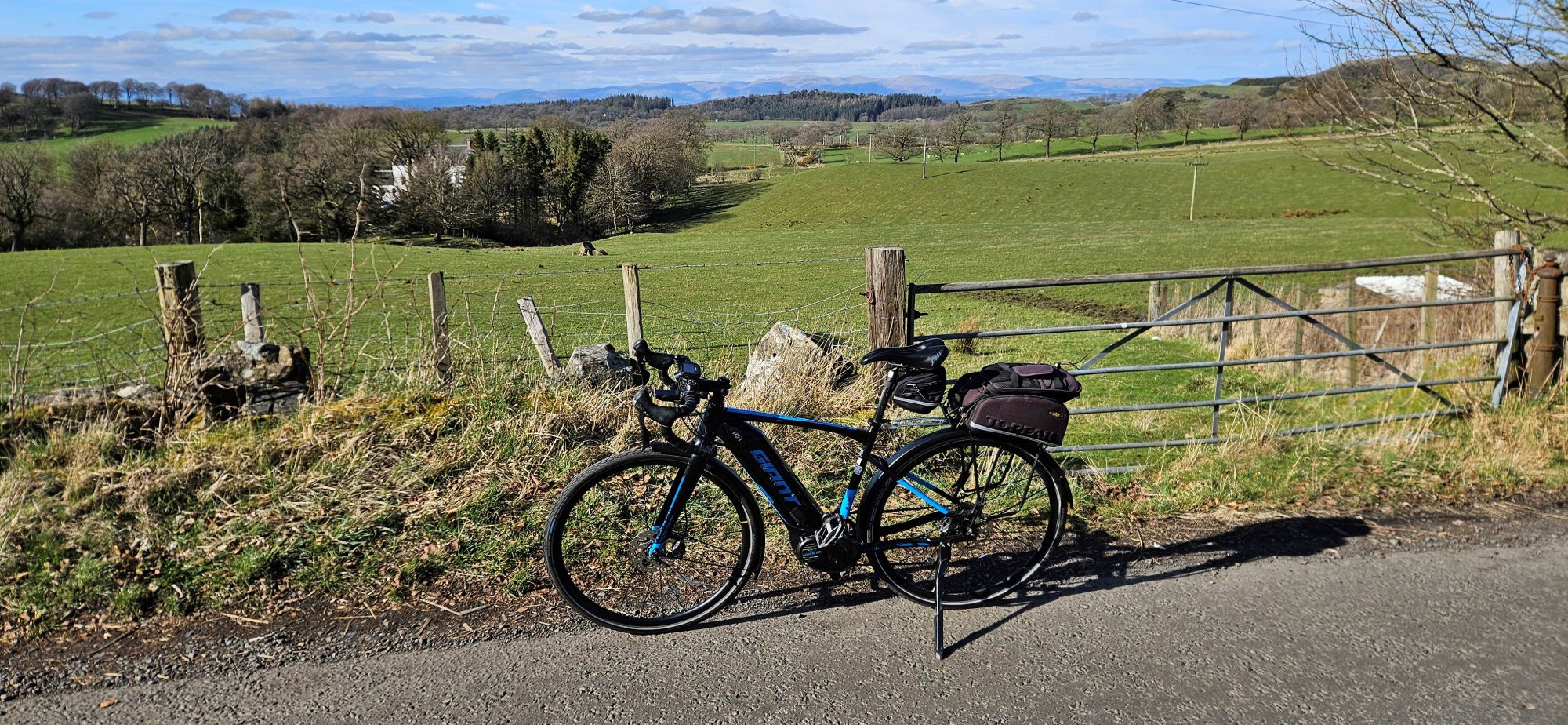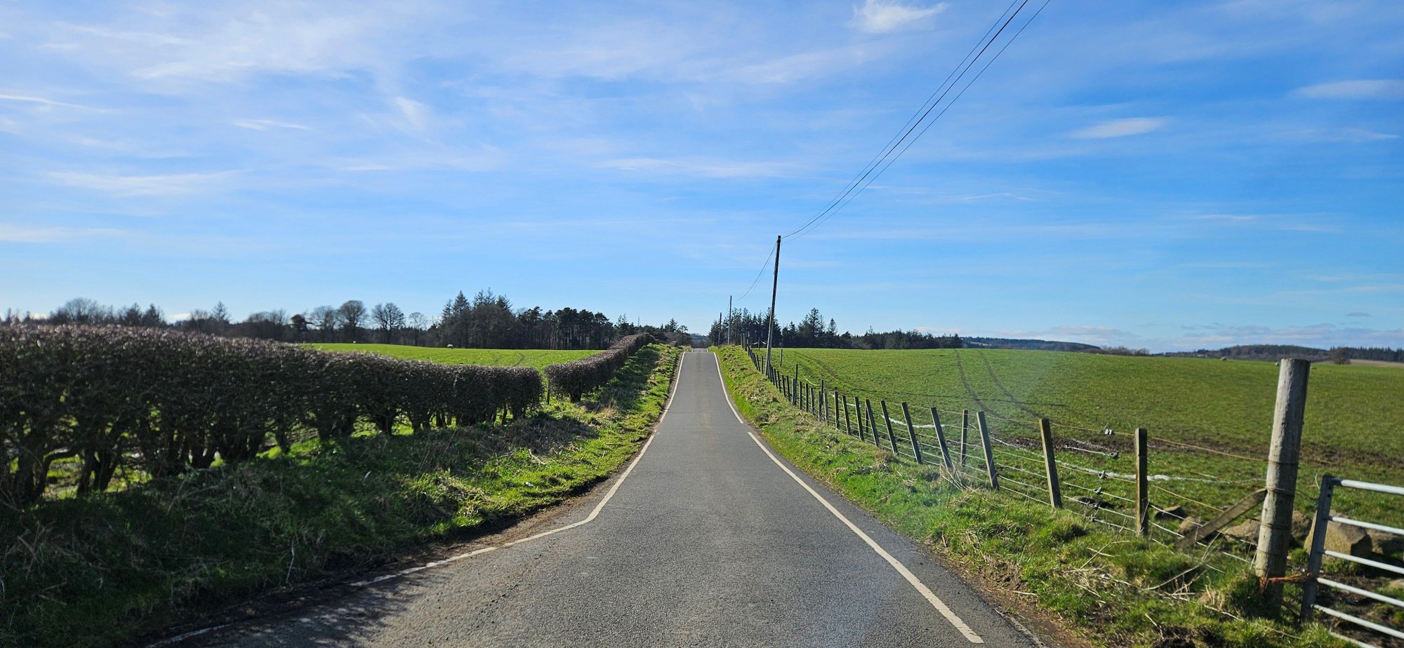 Then I had a nice descent immediately followed by a climb up into Shieldhill, where I turned west to take the back road to Slamannan where I got one last photo of the Ochils!