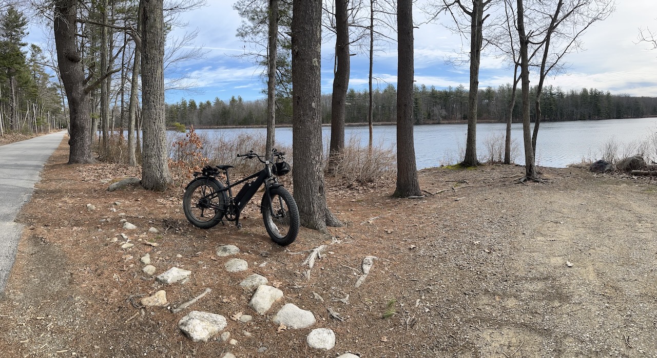Another great morning for a 20+ ride in central MA. Panorama shot below of my rest spot — Maple Spring Pond, Holden, Massachusetts — where I turn around and head home.