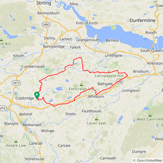 A short recovery ride after Thursdays epic, my legs were still feeling it but thankfully I had a 30mph tailwind to start me off! It was pretty much a direct westerly so I made my way east to Dechmont where I turned north up Burnhouse Road, it was definitely a day for climbing it and not descending it at speed with a 30mph crosswind!