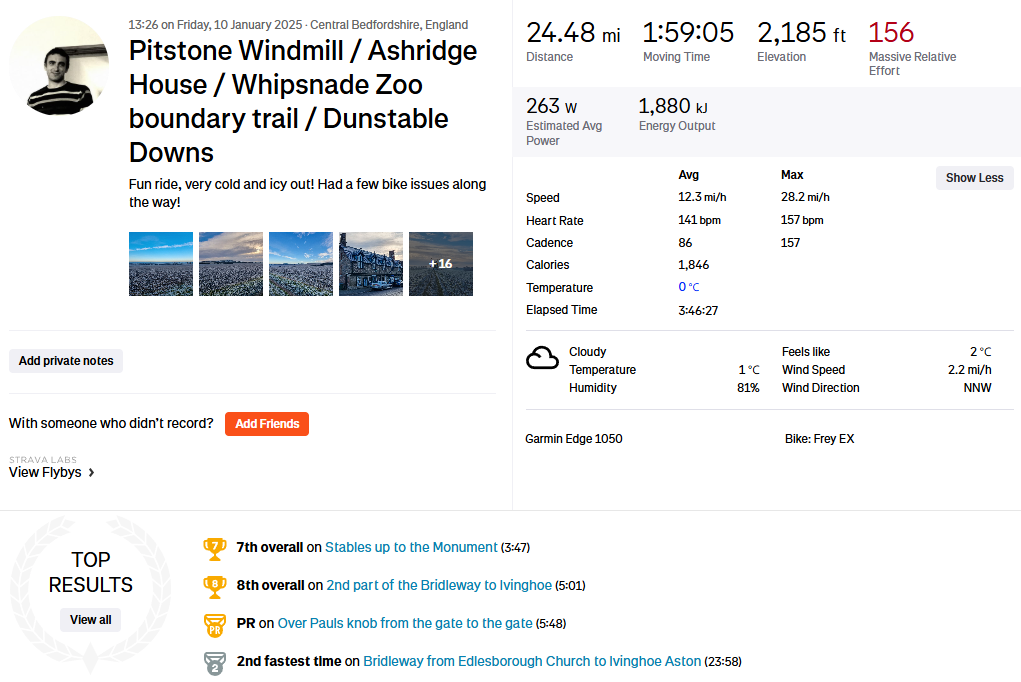 There was a constant crunching noise as I rode over the frozen ground and frost-covered grass! I had to be careful of riding on the frozen puddles, when I broke through the ice some were deeper than expected!