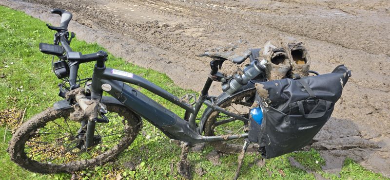 No no Chris. I was sucked in. Meaning my shoes acted as anchors (deep inside the mud and totally covered) and the e-bike was similarly stuck. I could not move myself at all! I found a way to get out from the mud while still preserving my shoes (which cost me a pair of socks). The firefighters (as they arrived) were glad they wouldn't need to risk losing their own rubber boots. They helped me become cleaner in a good mood and friendly.