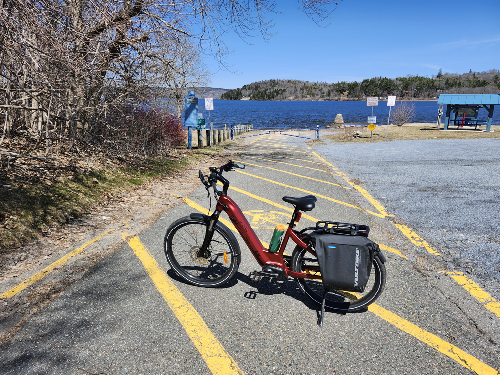After taking this photo I rode for about an hour and, as usual, recorded the event with the Ride with GPS app (map display on). Despite the obvious drain from running a GPS app, the iPhone's charge level rose from 61% to 85%.