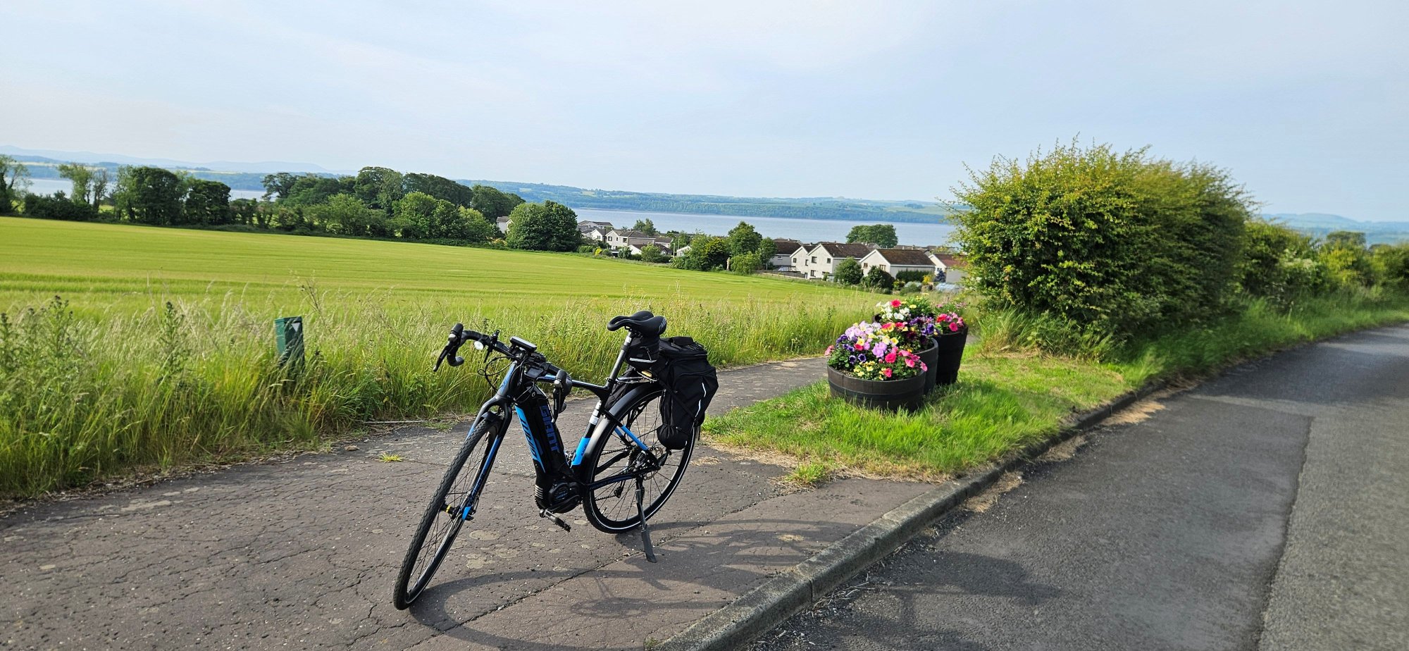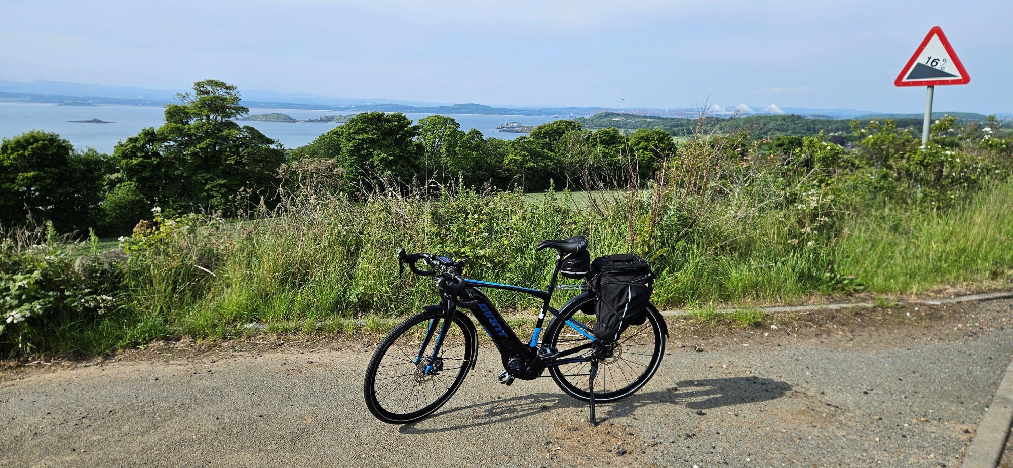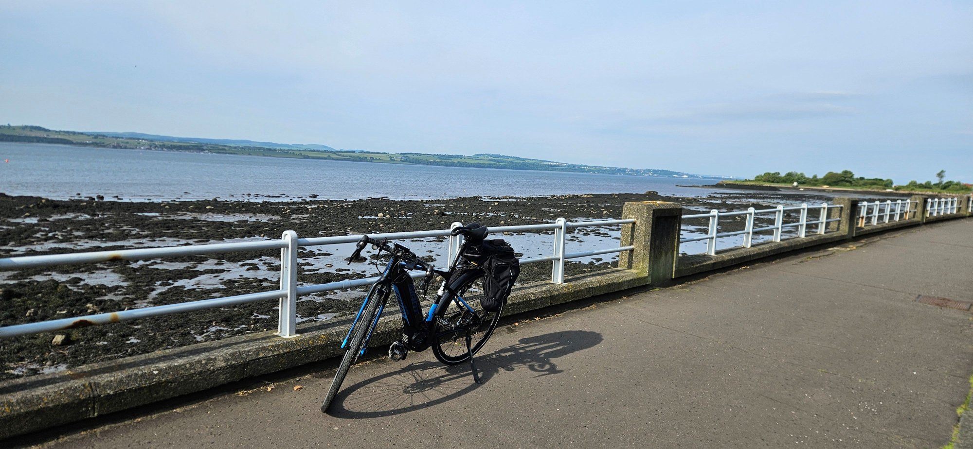 My first battery was depleting quickly due to the strong easterly, I managed to get 42 miles out of it and changed it just before the 16% climb at Aberdour! I grabbed these 2 photos just before reaching Aberdour!