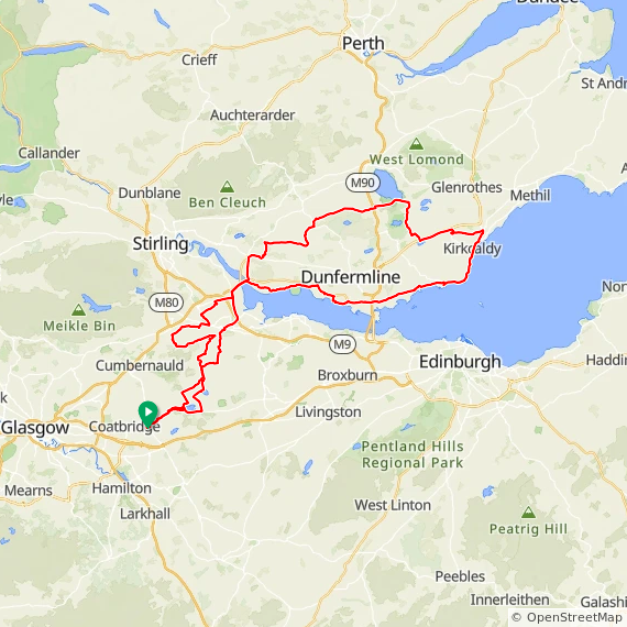 I won't make it a hattrick, it was damn scary and I had to endure it for 2 miles before finally reaching the exit for Lochgelly! The really annoying thing is there are no warning signs saying no bicycles, the only saving grace was a very narrow shoulder which was covered in debris and I was terrified I might get a puncture!