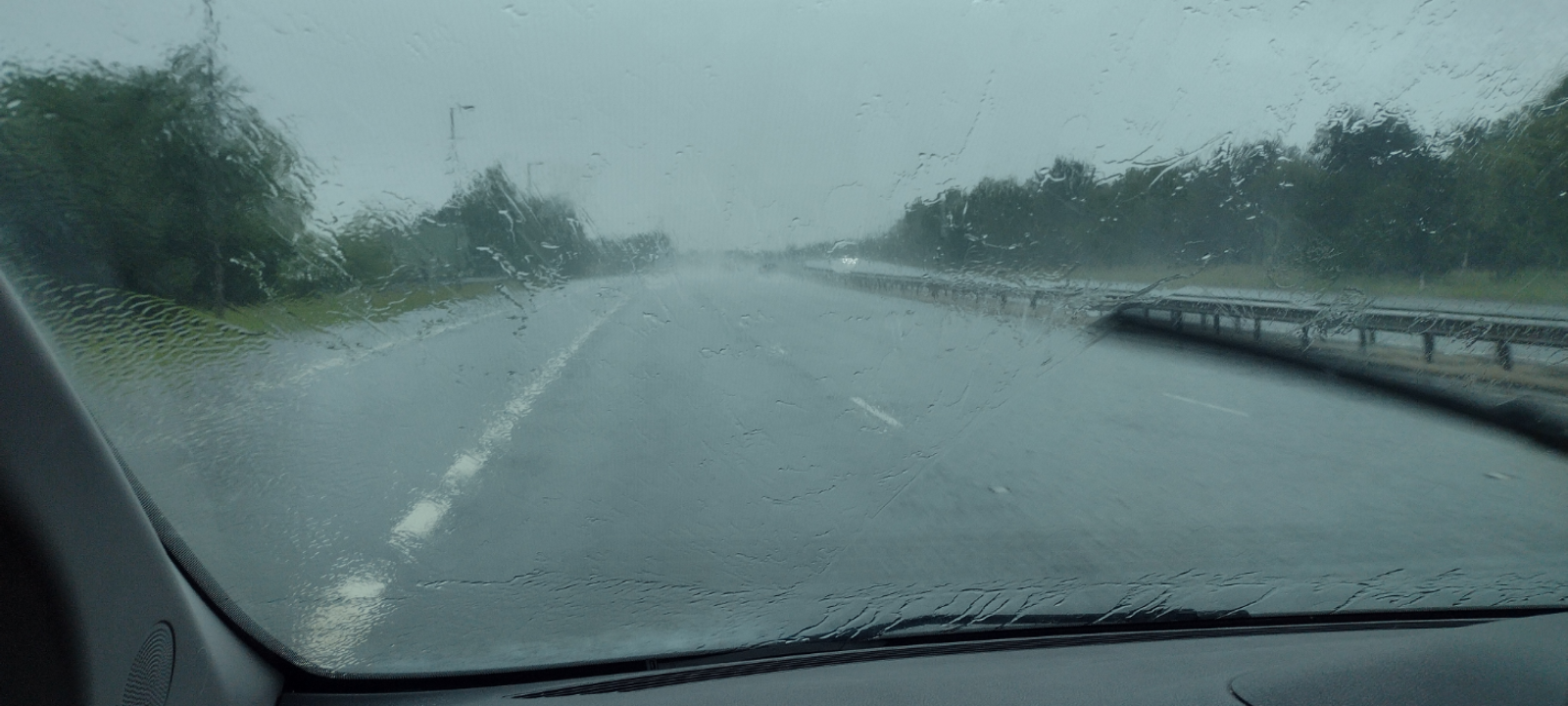 The rain continued, but as we approached the more mountainous regions it became very atmospheric, this is a hopeless distant windscreen shot., but the very Canadian looking pine forests looks amazing as they steam off the rain.