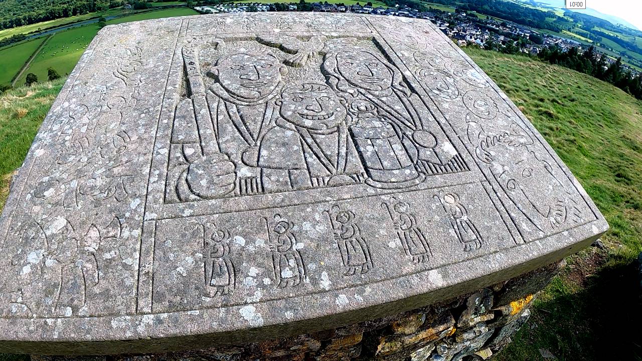 • The carved stone slabs, created by local artist Mary Kenny, depict two thousand years of Innerleithen's history.