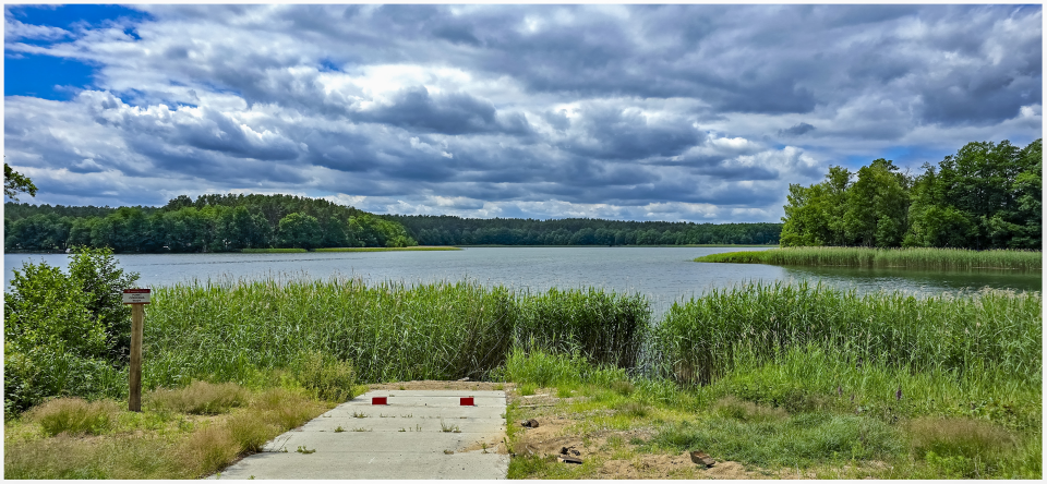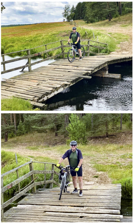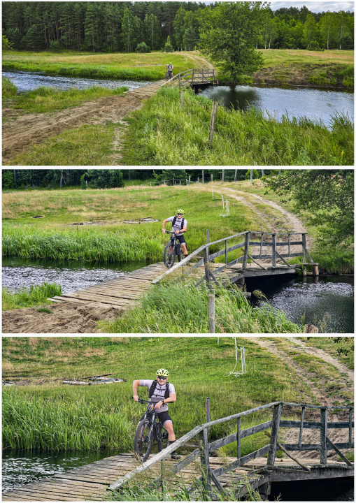 Our route took us to Masuria. Immediately, sandy roads appeared... Aargh! Here, a wooden bridge over River Łyna (the main river of Varmia). We spent a short time for photos there.