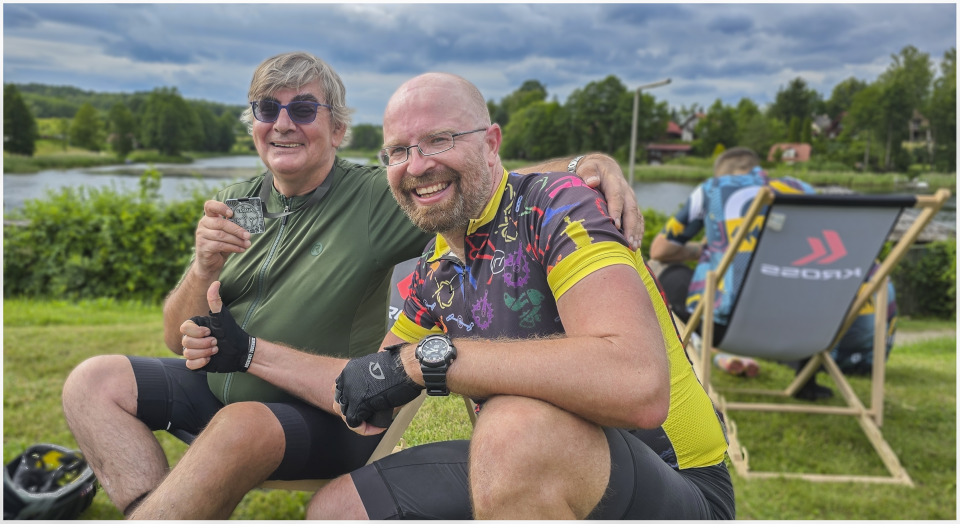 Alfer was the author (design and production) of any graphics used in Varmia Gravel. He also started in the Sprint 50-mile (2,477 ft elevation gain) race on a carbon full suspension MTB and took the 5th place in 2 hours and 56 minutes! (Despite white hair, he is in his early 40s).